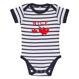 Body bébé rayé Transfert Floc 2 Requins Nice blanc/marine 3/6 mois