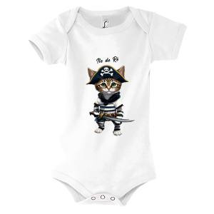 Body bébé Transfert Chat Pirate Île de Ré Blanc 3/6 mois