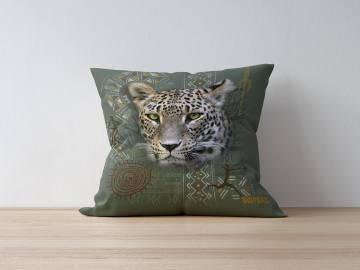 Coussin all-over Léopard Intemporel (Kaki Marron) Bioparc uni 40 x 40