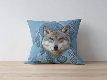 Coussin all-over Loup Intemporel (Bleu Beige) Bioparc uni 40 x 40