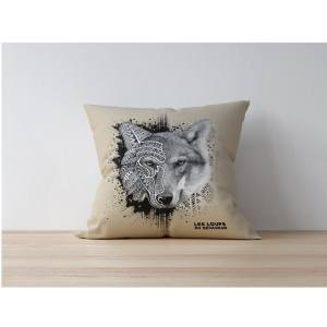 Coussin all-over Loup Natives Tribes les Loups du Gévaudan (Fond Beige) uni 40 x 40