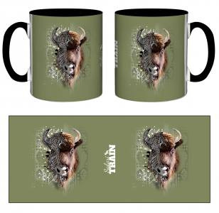 Mug bicolore Bison Native Tribes logo Safari Train (Fond Kaki Beige Noir) noir Taille unique