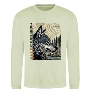 Sweatshirt col rond Loup Linocut les Loups du Gévaudan Pistachio M