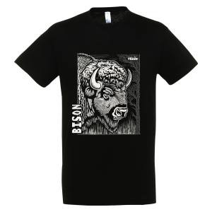 T-shirt enfant bio ajusté Bison Linocut Gamme Black Safari Train Noir Profond 8 ans