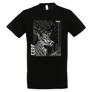 T-shirt enfant bio ajusté Cerf Linocut Safari Train Noir Profond 8 ans