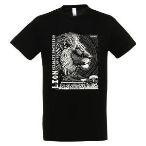 T-shirt enfant bio ajusté Lion Linocut Gamme Black + transfert Col Bioparc Noir Profond 6 ans