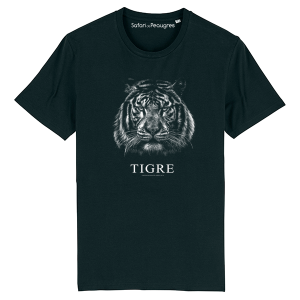 T-shirt enfant bio ajusté Tigre Gamme Black + transfert Col Safari de Peaugres Black 12 ans