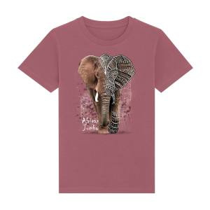 T-shirt enfant bio Éléphant Native Tribes + transfert Col Zoo Boissière du Dore Hibiscus Pink 3/4 an