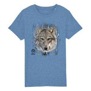 T-shirt enfant bio Loup Native Tribes + transfert Col Parc Animalier des Pyrénées Mid Heather Blue 3