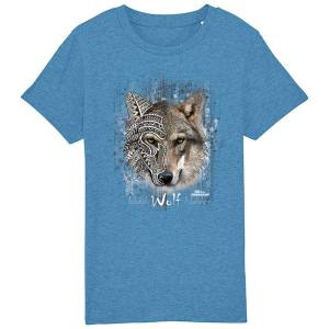 T-shirt enfant bio Loup Tribes Zoo de la Bourbansais Mid Heather Blue 9/11 ans