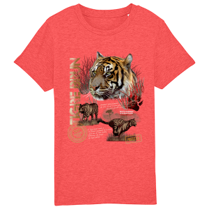 T-shirt enfant bio Tigre Brun Réserve de la Haute Touche Heather Grey 9/11 ans