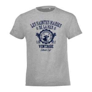 T-shirt enfant Les Saintes Maries de la Mer Vintage Tête de Taureau Camargue Gris Chiné 2 ans