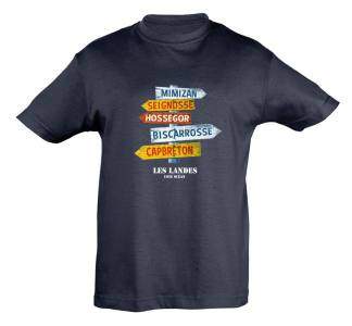 T-shirt enfant Panneaux Capbreton/ Hossegor/ Seignosse/ Mimizan/ Biscarrosse Les Landes Marine 14 an