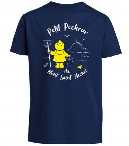 T-shirt enfant Petit Pêcheur Mont Saint Michel + transfert Applique Ciré jaune Marine 2 ans