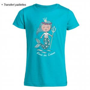 T-shirt enfant Reine des Sirènes + transfert paillettes (Sans Nom de ville) Bleu Atoll 2 ans