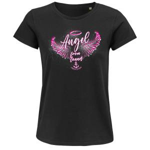 T-shirt femme Angel From Cannes (En Rose sur le T-shirt Noir et T-shirt Rose) Noir Profond L