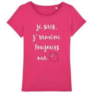 T-shirt femme bio Je Sais J 'Ramene Toujours Ma Fraise + transfert Paillette Fraise Raspberry S