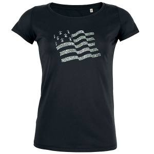 T-shirt femme bio Transfert Paillette Argent Drapeau Bretagne Black S