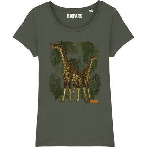 T-shirt femme premium bio Girafes Bioparc + transfert Col Bioparc British Khaki XS