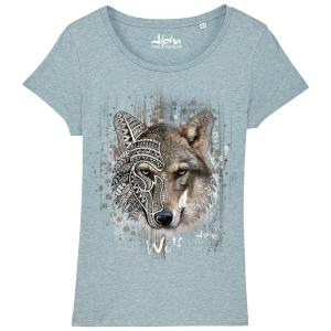 T-shirt femme premium bio Loup Native Tribes Alpha Parc Animalier + transfert Col Alpha Parc Animali
