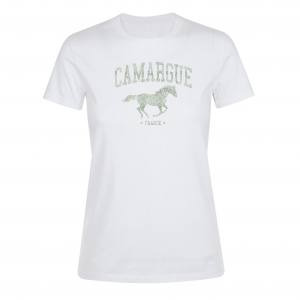 T-shirt femme Transfert Paillette Camargue Cheval Au Galop (En Argent sur T-shirt Noir et Or sur T-s