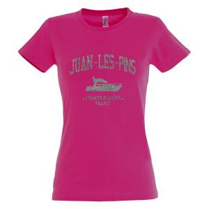 T-shirt femme Transfert Paillette Juan-Les-Pins Yatch French Riviera France Version Argent Fuschia S