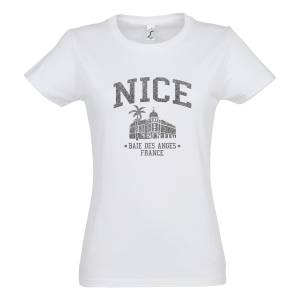 T-shirt femme Transfert Paillette Nice (Negresco) Baie des Anges (Version Argent) Blanc S