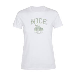T-shirt femme Transfert Paillette Nice (Negresco) Baie des Anges (Version Or) Blanc S