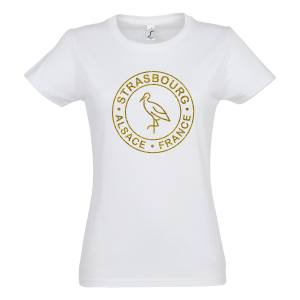 T-shirt femme Transfert paillettes Cigogne Aux Traits Strasbourg Alsace France dans un Cercle Versio