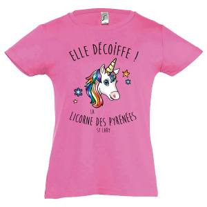 T-shirt fillette Elle Décoiffe !! la Licorne des Pyrénées Saint Lary Rose Orchidée 10 ans