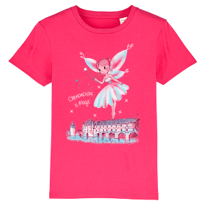 T-shirt fillette Fée Chenonceau + Strass Rose Orchidée 4 ans