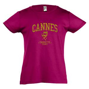 T-shirt fillette Transfert Paillette Cannes Chaise Croisette France Version Or Fuschia 2 ans