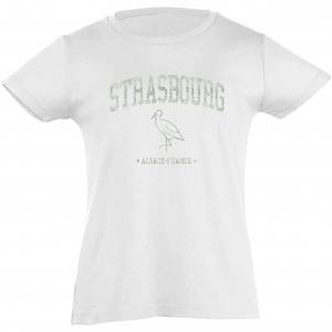 T-shirt fillette Transfert Paillette Cigogne Alsace France Version Argent Rose Orchidée 10 ans