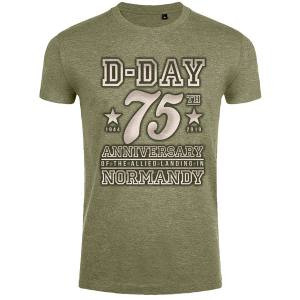 T-shirt homme ajusté 75th Anniversary Normandy + transfert Col 75ème kaki chiné S