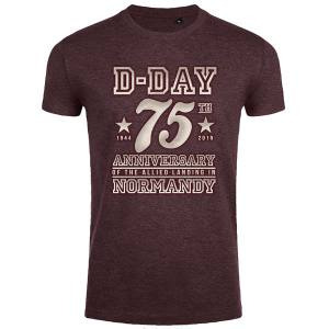 T-shirt homme ajusté 75th Anniversary Normandy + transfert Col 75ème Oxblood Chiné XS