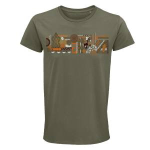 T-shirt homme bio ajusté Origines Safari de Peaugres + transfert Col Safari de Peaugres Kaki XS