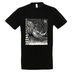 T-shirt homme bio ajusté Rhino Linocut Gamme Black + transfert Col Safari de Peaugres Noir XS