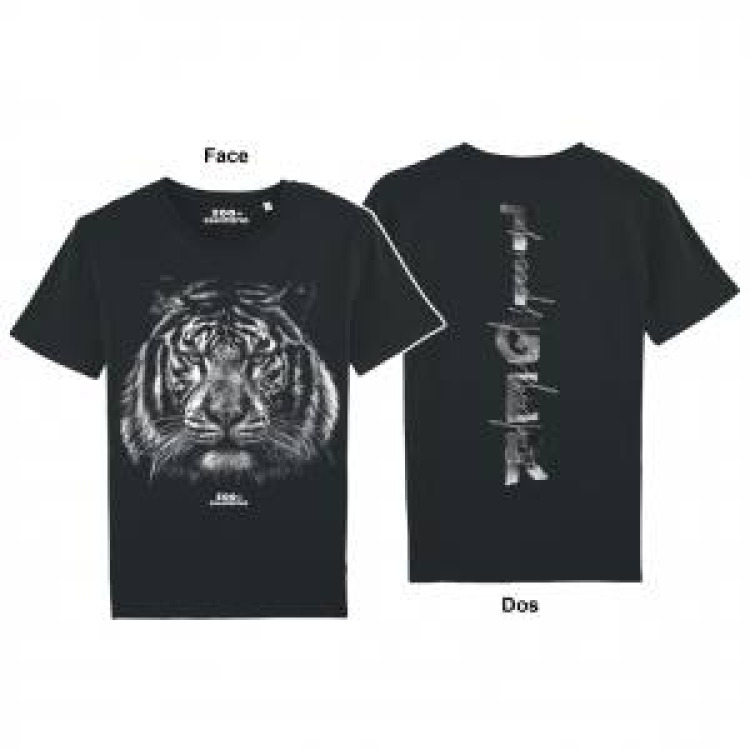 T-shirt homme bio ajusté Tête de Tigre Gamme Black Recto/ Verso + transfert Col Zoo de Champrepus No