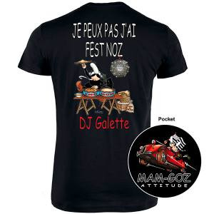 T-shirt homme Mam Goz Dj Galette + transfert pocket Noir Profond 4XL