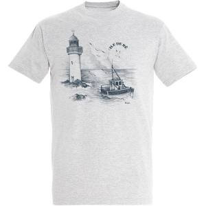 T-shirt homme Phare/ Bateau de Pêche Île de Ré Blanc Chiné S