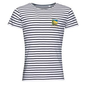 T-shirt homme rayé Pr1313 Ref/ 34071 Blason Dune du Pilat French Marine / Blanc L