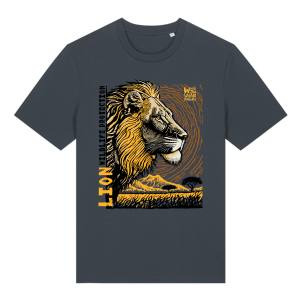 T-shirt premium bio Lion Linocut Safari de Peaugres + transfert Col Safari de Peaugres India Ink Gre