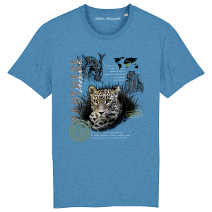 T-shirt premium bio Panthère Léopard + transfert Col Safari de Peaugres Mid Heather Blue S