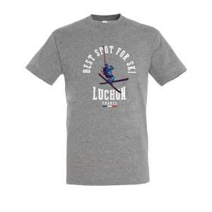 T-shirt unisexe Best Spot for Ski Luchon Gris Chiné S