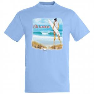 T-shirt unisexe Echassier Surfeur sous tons Bleu Ciel M
