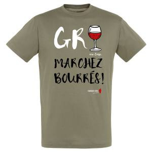 T-shirt unisexe Gr Vin Marchez Bourres ! Corse Kaki S