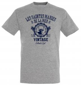 T-shirt unisexe Les Saintes Maries de la Mer Vintage Tête de Taureau Camargue Gris Chiné S