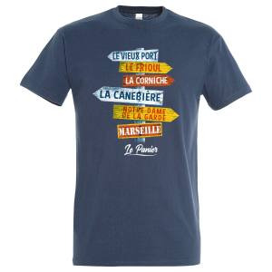 T-shirt unisexe Pancarte le Vieux Port/ le Frioul/ la Corniche/ La Canebière/ Nd de la Garde/ Marsei