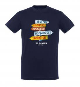 T-shirt unisexe Panneaux Capbreton/ Hossegor/ Seignosse/ Mimizan/ Biscarrosse Les Landes Marine XS