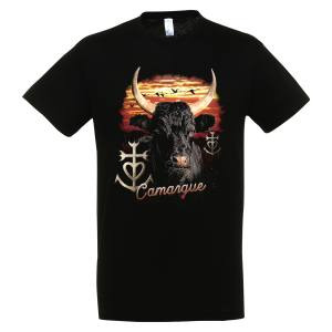 T-shirt unisexe Tête de Taureau Croix de Camargue Oiseaux en Vol Camargue Noir Profond XS